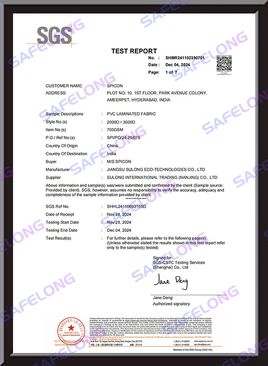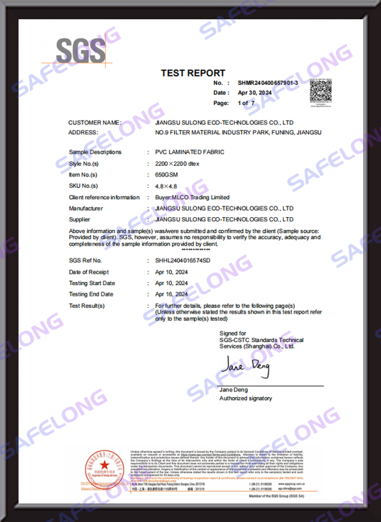Post annos evolutionis, Solon tutelae Environmental nationalis summus tech inceptis factus est, summus technicus provinciae Jiangsu, et nobilis negotiatio Yancheng urbs. Societas ISO qualitatem, ambitum et systema certificationis occupational sanitatis transiit. Fabricae aereae et meatus aerei per MA et KA notificati sunt nationalis Salutis Standard et CE Unionis Europaeae. Societas etiam ASTM certificationem Societatis Americanae ad probationes et Materials (ASTM), NFPA701 transegit, flamma retardans certificationem Consilii Praesidii Ignis Nationalis (NFPC), et MSHA certificatione Mining Salutis et Health Administrationis Foederatae (FMSSHA) Civitatum Americae Unitarum.