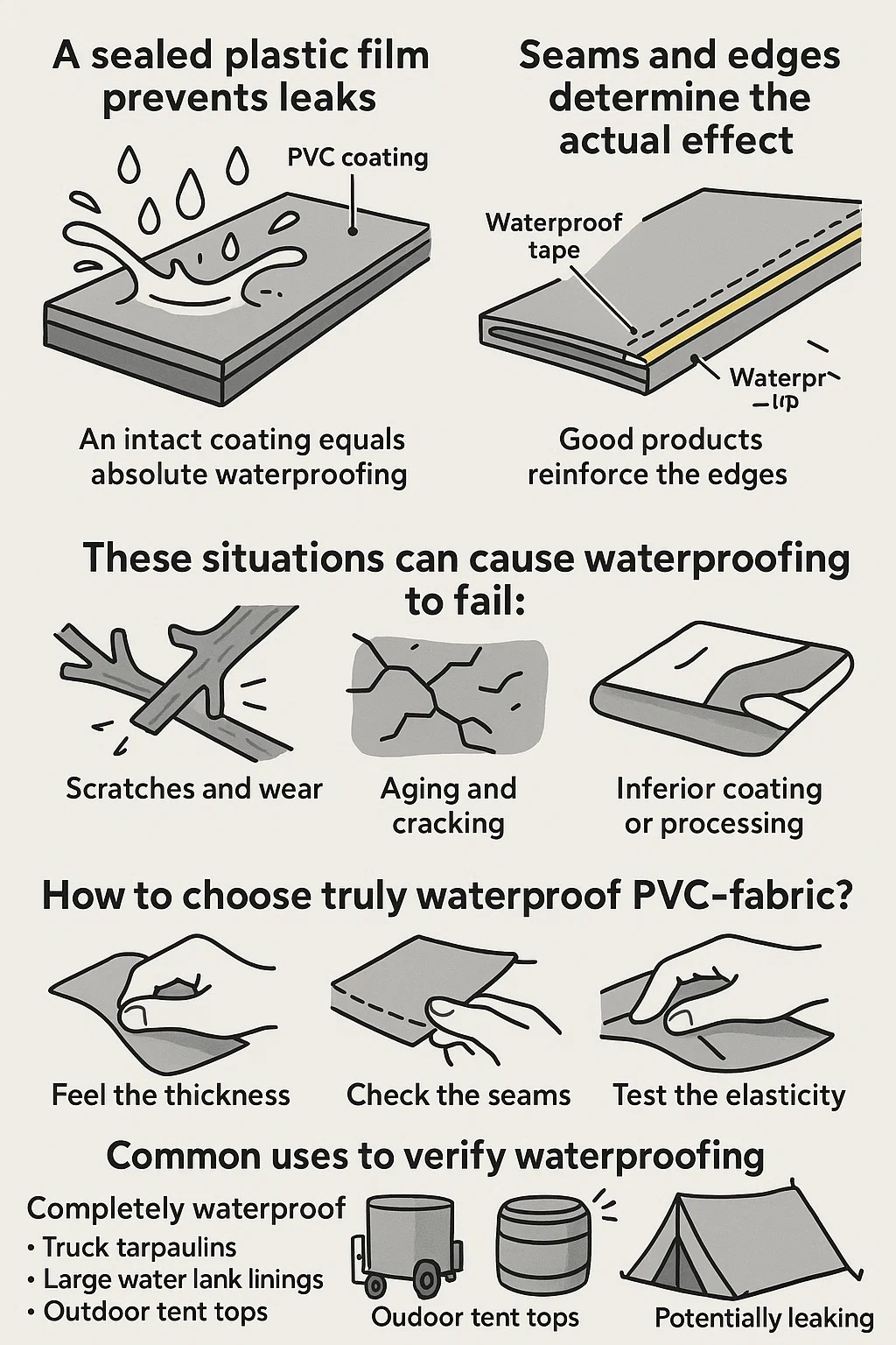 Omnino IMPERVIUS: Truck tarpaulini, magnae liniturae aquae piscinae, cacumina tentoria velit – haec spissam PVC vestitionem et processum signandi requirunt.