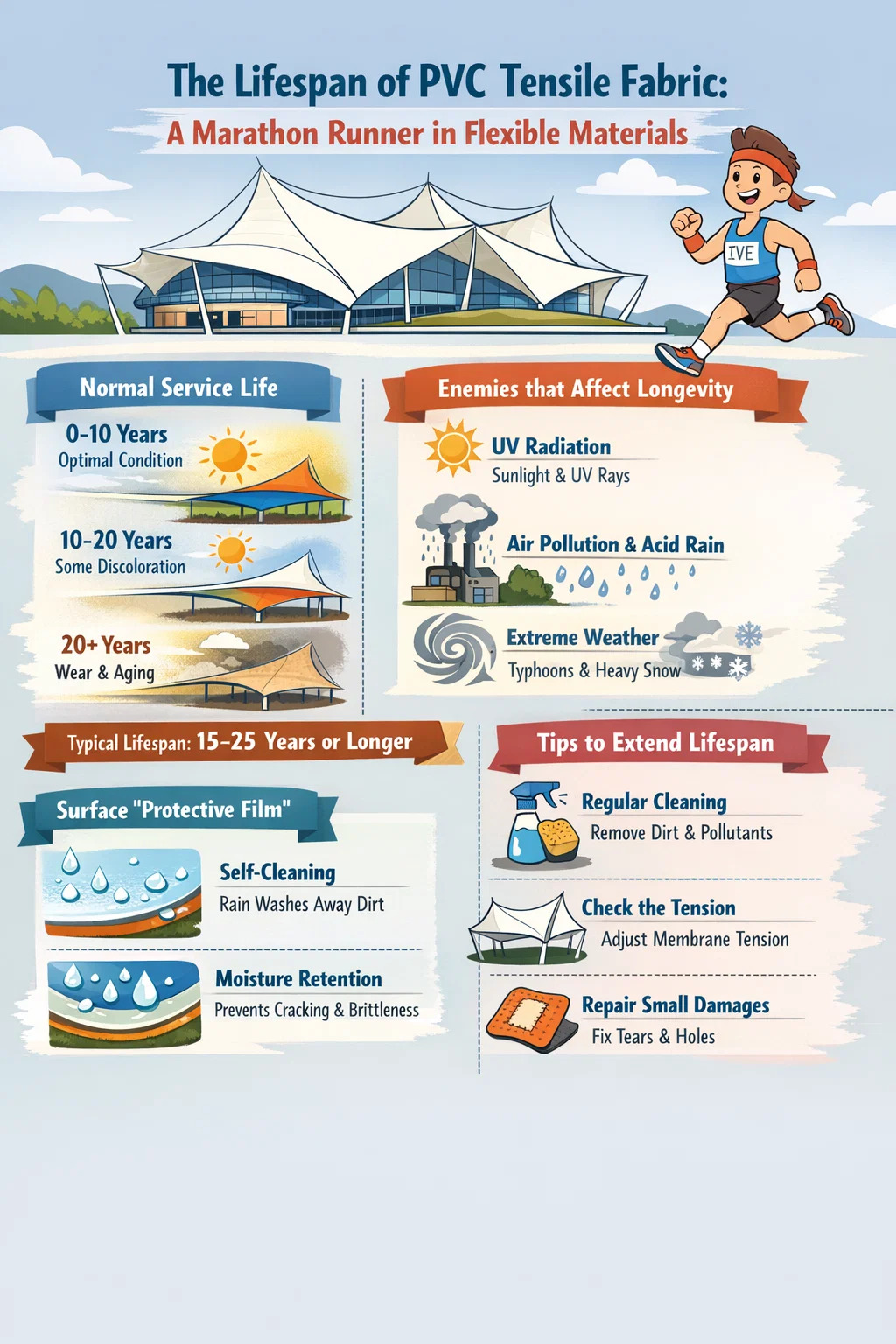 Sub normali sustentatione, summus qualitas PVC distrahentes structuras fabricae typice durare potest per 15 ad 25 annos, vel etiam amplius.